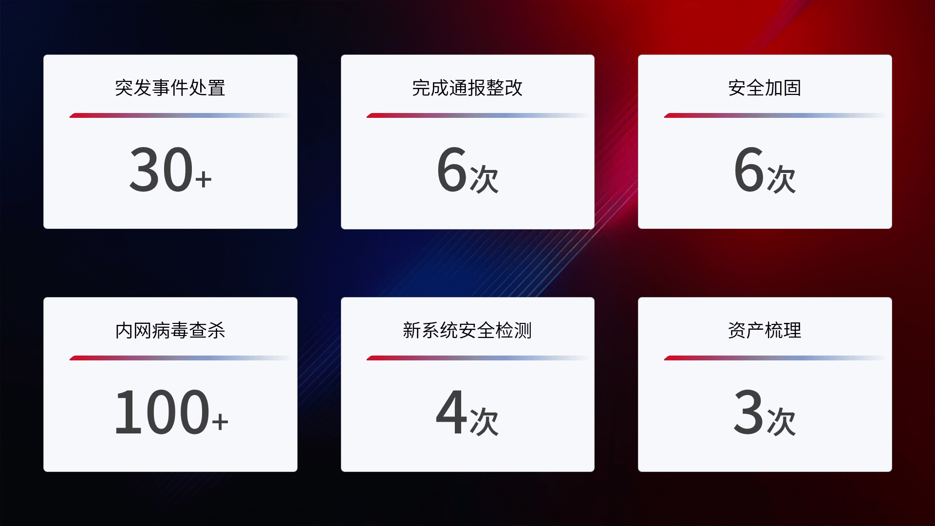 网络安全加固与风险管理:通过技术加固手段,,,如加强区域隔离,,,,缩减攻击内网横向移动的范围;优化现有网络安全管理制度,,,降低网络威胁暴露面,,,减少被黑客攻击的可能性。。